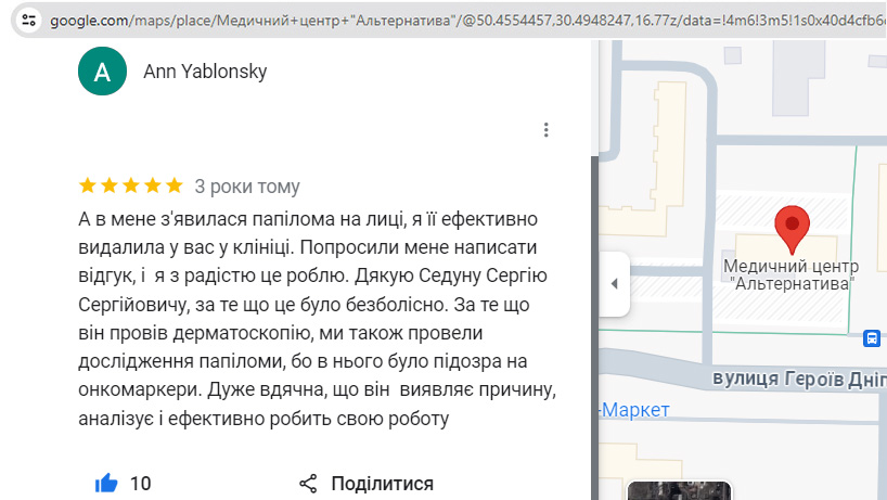 Авторська методика лікування при новоутвореннях на шкірі в медичному центрі "Альтернатива"