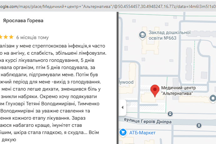 Тепер мені стало легше дихати, зменшився біль у горлі, зникли набряки.Окремо хочу подякувати лікарям Глуховрі Тетяні Володимирівні, Тимченці Ользі Володимирівні за уважне ставлення та пояснення кожного етапу лікування.